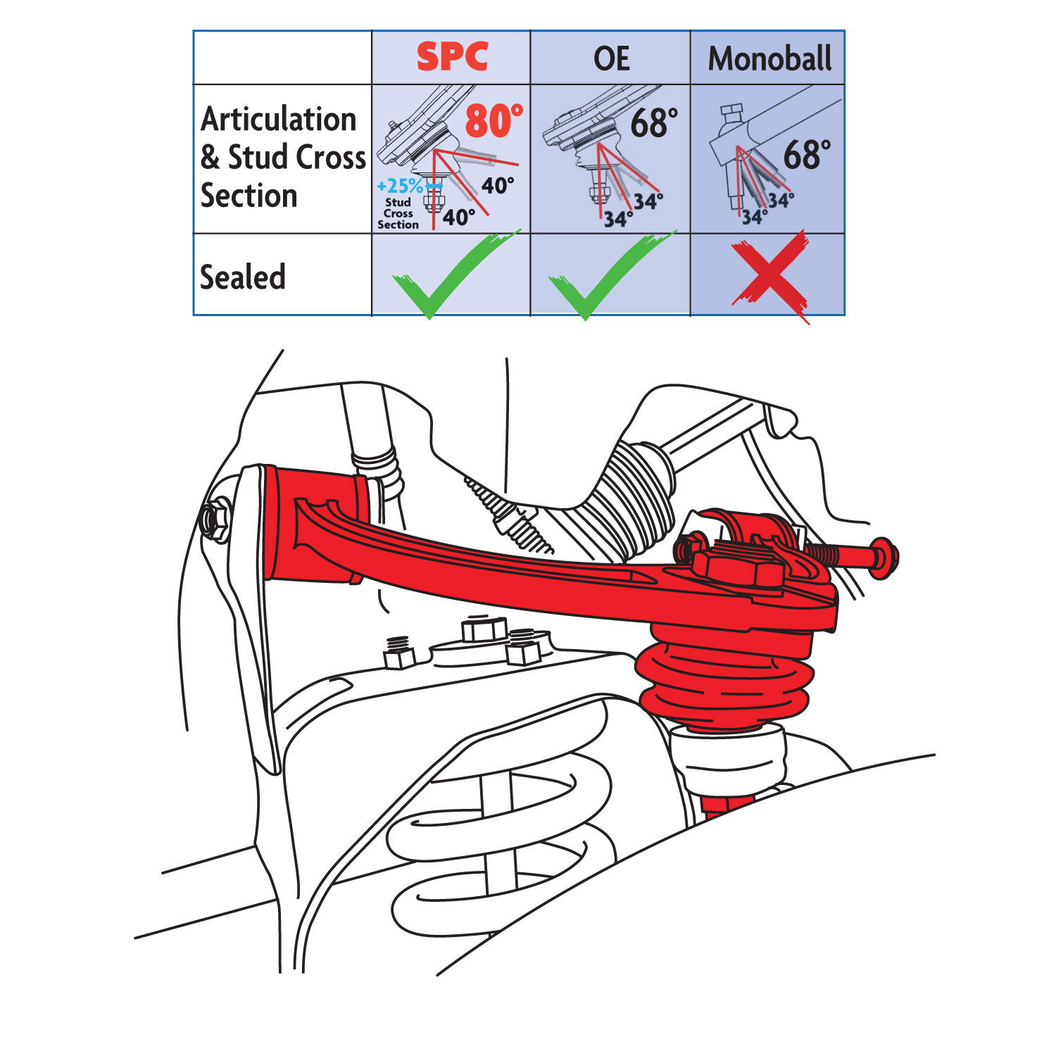- New fully sealed ball joint architecture keeps grease in and contaminants out for a maintenance-free joint