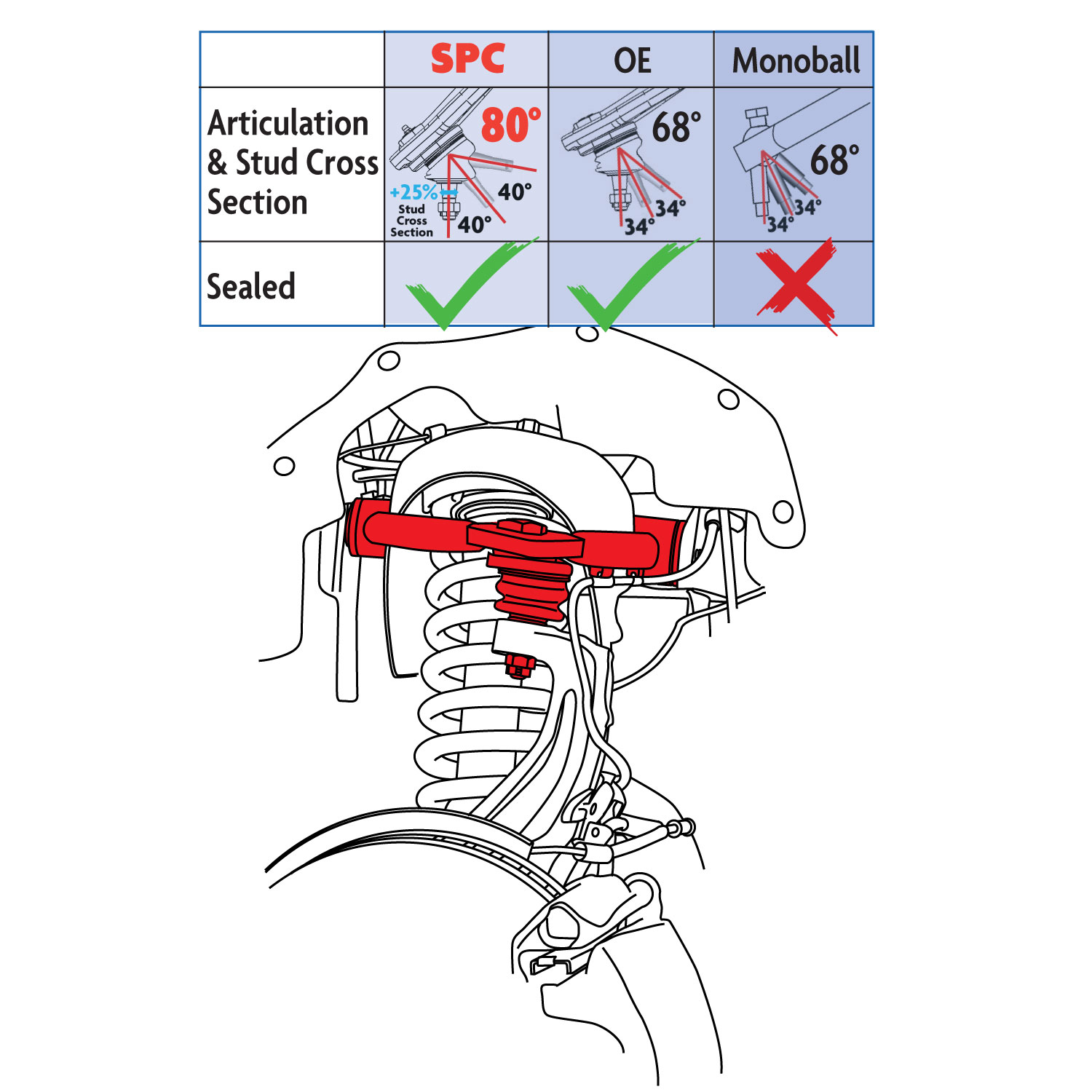 - New fully sealed ball joint architecture keeps grease in and contaminants out for a maintenance-free joint